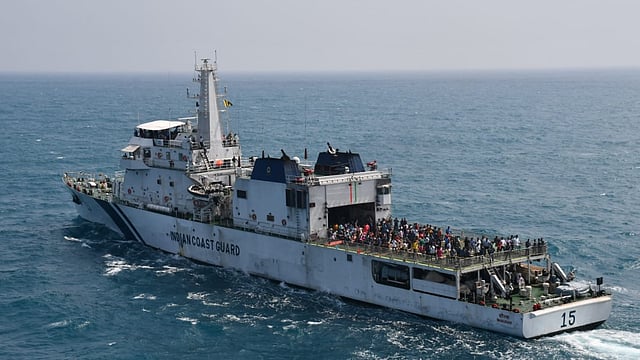 The ICGs also displayed their arms by launching rockets from the ship's deck and firing assault rifles into the air. Nagapattinam District Collector Johny Tom Varghese and Nagapattinam SP Harsh Singh were among the special guests.