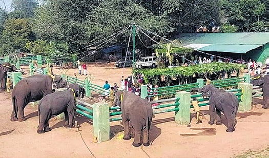 COIMBATORE: Over 500 tourists watched in awe as twenty captive elephants took part in pongal celebrations organised by the Tamil Nadu forest department at Kozhikamuthi in Anamalai Tiger Reserve (ATR) on Tuesday morning.