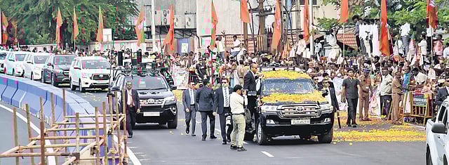 CHENNAI: Thousands of BJP functionaries gave Prime Minister Narendra Modi a grand welcome on Friday, lining up on both sides of the road on which he drove by car from Sivananda Salai to Nehru stadium to inaugurate the Khelo India games.