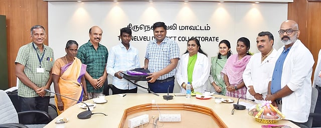 On Saturday, Chinnadurai met with Collector Dr KP Karthikeyan, who gave him a tablet loaded with e-books. Chinnadurai also met and thanked the doctors who treated him at TvMCH, and the teachers who taught him at the hospital. Writer R Narumpoonathan, District Revenue Officer Suganya, TvMCH Dean Dr Revathy Balan, hospital Superintendent Dr Balasubramanian, and the team of doctors including Dr Saravanan, Dr Senthil Sivamuthu, Dr Amalan, and Dr Esthar were present at the collectorate.