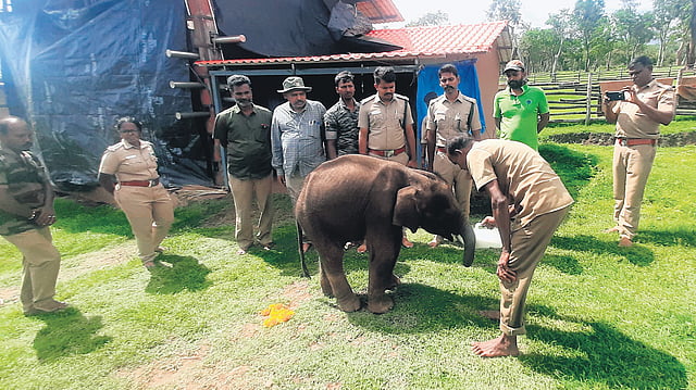 “The animal is just four to five months old and is currently weighing 150 kilogrammes as per the age. Its health is fine. A dedicated team will take care of the animal separately without allowing it to mingle with other calf elephants so that it doesn’t contract communicable diseases. Based on the direction of Assistant Veterinary Surgeon K Rajesh Kumar, vitamin drops and liquid to improve digestion along with lactogen will be provided to the animal,” said sources.