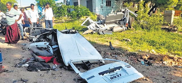 Jedarpalayam police said the van entered the highway from a side street and V Vignesh could not notice it as the headlights were not turned on. The impact of the collision was so severe that the boys died on the spot. Vignesh too suffered injuries.