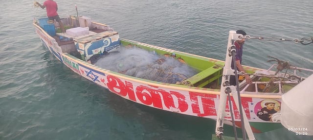 During the surveillance at deep sea, the team found a country boat sailing towards Sri Lanka and intercepted it after a brief hot pursuit. The team inspected the boat and found five sacks concealed inside. The country boat along with the contraband and three persons on board were brought to Coast Guard Station Mandapam for further investigation.