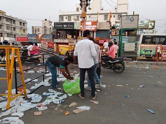 “When I came in the morning to open my shop which is located in the basement of a commercial complex, I was shocked to see entrance covered in a pile of trash and empty water bottles. We removed over 100 plastic water bottles and other waste and disposed of them as customers wouldn’t walk in a shop that’s welcomed by waste,” D Raja, a shopkeeper from RS Puram told TNIE.