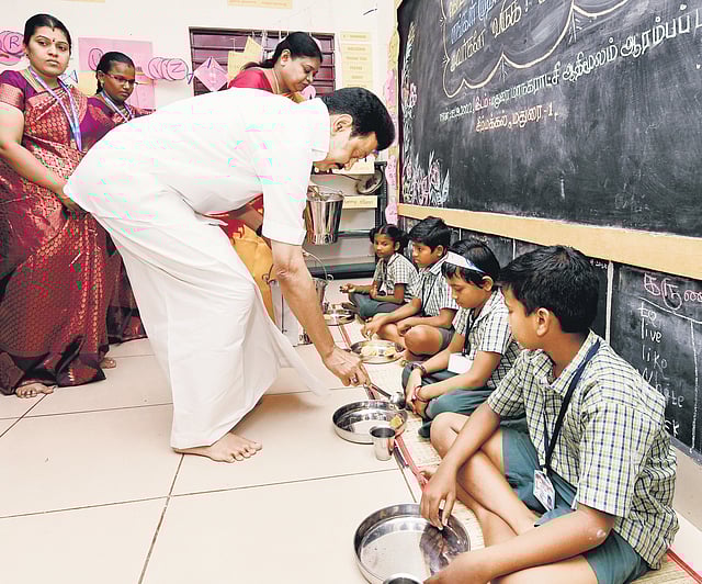 The next significant evolution in the scheme was catalysed by AIADMK founder and former Chief Minister M G Ramachandran. Under his leadership, the midday meals scheme underwent substantial expansion, initially including children in anganwadis in 1982 under the name Chief Minister’s Nutritious Noon Meal Scheme. By 1984, the scheme’s scope was extended to include children up to 15 years. From around `5 crore, the state’s funding was increased to several hundred crores for which the government was even criticised.