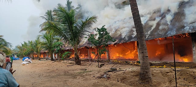 On Monday at around 9 pm, a blaze erupted due to a sudden electric spark near the EB meter wire. It quickly engulfed the chickens in the farm of area 20×300 feet located at the Arangaldurgam village. The farm's structure covered with dried coconut leaves and sheets facilitated the rapid spread of fire, leading to huge losses. The neighbours informed the fire department and the blaze was extinguished.