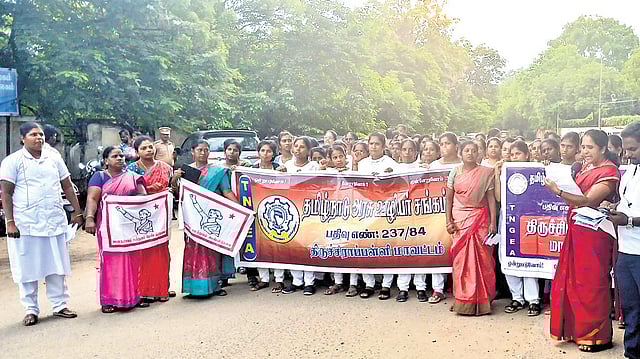 Demanding strict punishment for the suspect and robust safety measures to protect healthcare workers, the Tamil Nadu MRB Nurses Empowerment Association, alongside various government officers’ unions and women’s organisations, on Monday staged a protest near the collectorate. They reiterated the need for functional CCTVs, improved lighting, regular police patrolling, and secure transport options for staff, especially for female workers on night shifts.