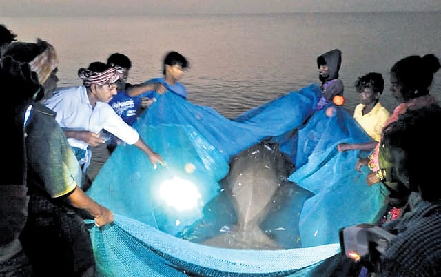After noticing the sea creature, the fishermen alerted the forest officials of Pattukottai range who coordinated the rescue operation. “We provided instructions over the phone as the mammal can only survive for a short time when it is out of water,” said Forest Ranger AS Chandrasekaran.