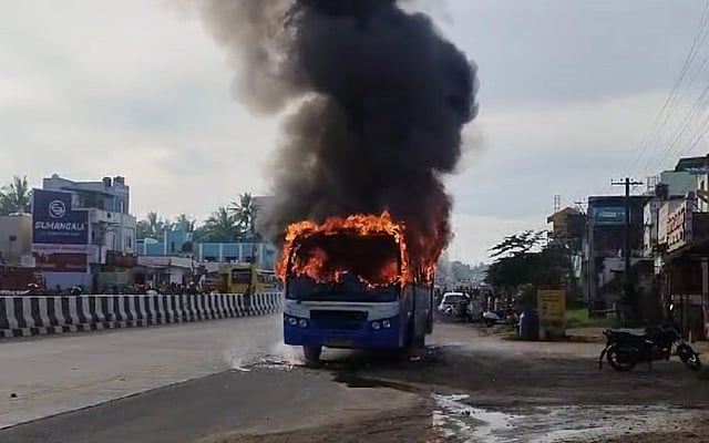 However, he managed to escape, police added. Even though the Kinathukkadavu fire station personnel arrived at the spot, the bus was completely gutted by then, said sources. The reason for fire is to be ascertained. Chettipalayam police are investigating the incident.