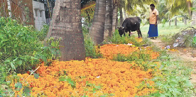 The festival widely celebrated in Kerala is the busiest season of the year for the farmers in Coimbatore. According to farmers, over 110 tonnes of flowers were sent to Kerala last year during Onam, but it has dropped to just 15 tonnes this year. One kg of marigold flower was sold for Rs 50 last year, but a 30kg flower bag gets just Rs 150 to Rs 200 this year, they said.