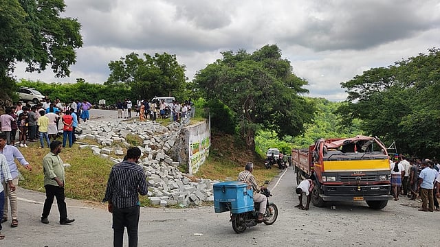 According to police, the load vehicle with hollow brick load from Koratagiri near Denkanikottai was heading to Anchetti. When it reached a curve at Thirumudakku, the driver lost control and the vehicle capsized on Madhesh and Jeyalakshmi who were riding a bike. They died on the spot as bricks from the vehicle fell on them. Helper Govinda also died in the accident.