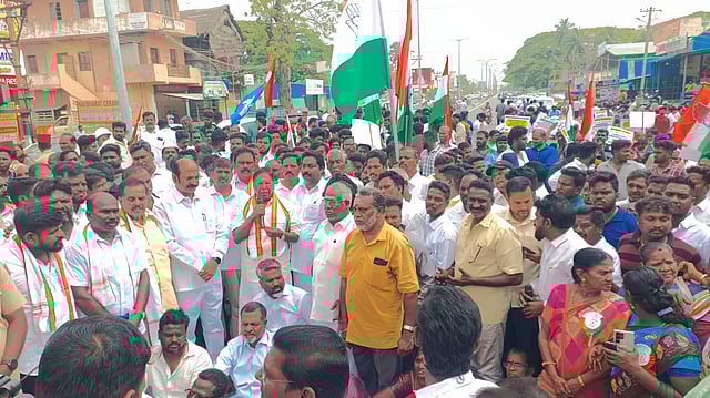 During the protest, Congress leaders, led by Narayanasamy, gathered near the Ayyappan temple on the Puducherry-Cuddalore Road and marched towards the Ariyankuppam police station. More than 300 Congress members, including MLA Vaidyanathan, former minister V Pethaperumal, former government whip R K R Anantharaman, and Mahila Congress leader Nisha, took part in the protest. They raised slogans against the police and demanded action against the officer involved.