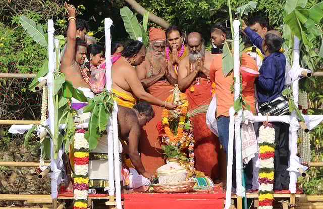 After the consecration, theertham was sprinkled on devotees through water pipes. To witness the consecration, devotees from rural parts like Mettupalayam, Annur Sulur and Pollachi arrived at the foothill at 5am. To prevent crowding in the hill, devotees were allowed in small batches through the steps. Hundreds of police personnel were deployed en route to regulate the crowd.