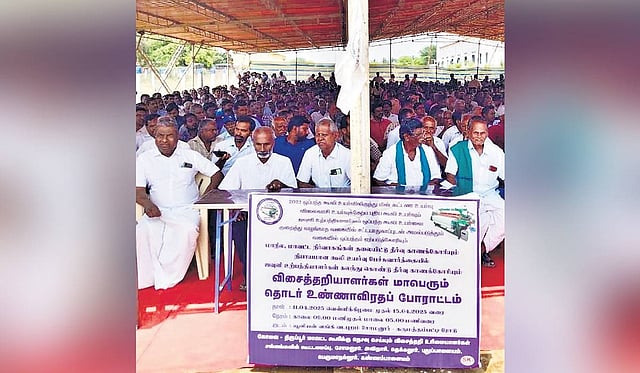 COIMBATORE: Powerloom weavers engaged in job-work in Coimbatore and Tiruppur districts began their hunger strike at Somanur on Friday, demanding the implementation of the wage increase as promised by master weavers three years ago.
