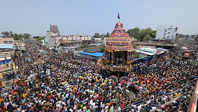 TIRUCHY: Unmindful of the heat, several thousands of devotees witnessed the car procession of the Samayapuram Mariamman temple, held on Tuesday as part of the annual chithirai festival. Around four lakh devotees attended the car procession, police said.