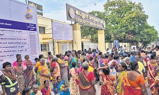 Cuddalore corporation has 45 wards, with 137 permanent workers and 370 on contract, totalling over 500 workers. Sanitation work has been outsourced to a private contractor. Workers alleged that the contractor has not provided proper equipment, there is a shortage of personnels and they haven’t been paid for three months.