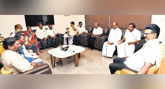 CHENNAI: A day after the state government announced various welfare schemes for conservancy workers, representatives of a few sanitary workers’ associations on Friday met Chief Minister M K Stalin at his residence to thank him. However, major labour unions in the city corporation including CITU-affiliated Red Flag Union, Uzhaippor Urimai Iyakkam, LTUC, and AICCTU, which participated or spearheaded the sanitary workers’ protest against privatisation of solid waste management in Royapuram and Thiru-Vi-Ka Nagar zones — were not part of the delegation. The schemes announced included free breakfast, housing, enhanced insurance cover, special focus on occupational diseases, self-employment support, and education aid for children of the workers.