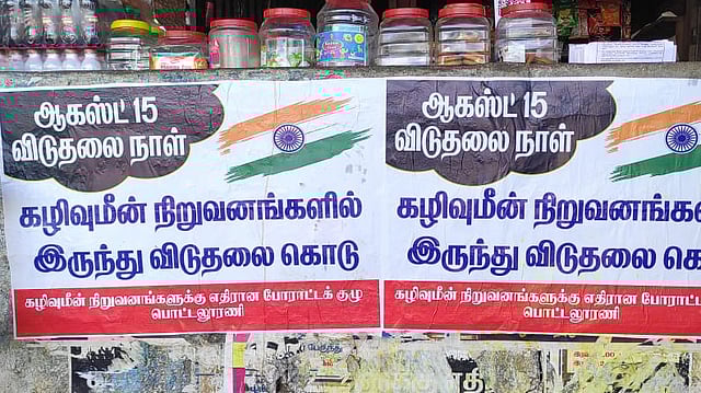 THOOTHUKUDI: Residents of Pottaloorani pasted posters across the village on the occasion of the 79th Independence Day celebrations, demanding freedom from fish feed companies polluting their village here on Friday.
