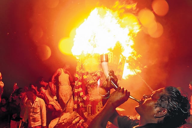 The Maha Deepam was lit right after the lighting of the Akhanda Deepam near the temple’s flag post. The deity was brought out and taken in procession amid the beating of percussion instruments and chants. Following this, the Panchamurthis — Vinayagar, Murugar, Annamalaiyar,