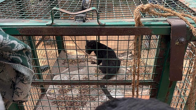The black leopard cub was allegedly abandoned by its mother near the house and was found alone by the locals. Following information from residents, forest department staff visited the spot and rescued the animal. The cub was shifted to a cage safely.