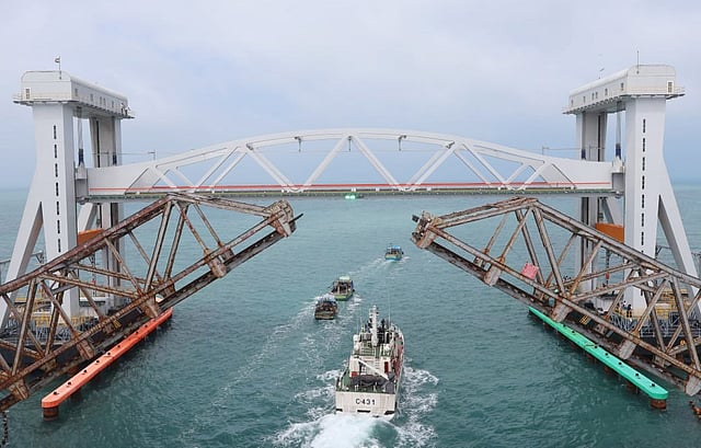 The construction of the new railway sea bridge at Pamban began in 2019 at a cost of Rs 535 crore. The Commissioner of Railway Safety inspected the bridge and authorised operation of services across the new bridge in November 2024.