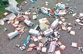 Officials said the dumped medicines may be from local hospitals.