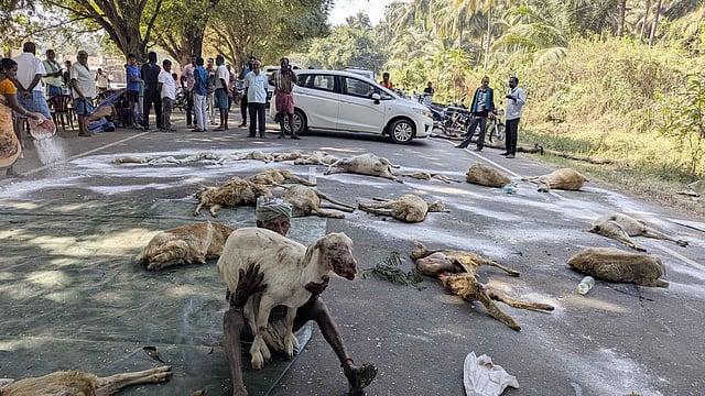On Thursday morning, 20 goats were allegedly killed by stray dogs in Chennimalai, Erode district and three were killed in Sivanmalai, Tiruppur district. The affected farmers and office bearers of various farmers associations began a roadblock on Palani-Erode road with carcasses of the goats. It continued on Friday as well. As a result, all vehicles were diverted through alternative routes.