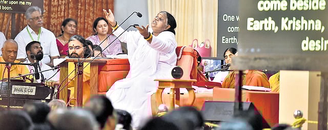 Speaking to devotees during Brahmasthanam Mahotsav 2025, Amma said humankind has tormented Nature for generations. “We have forgotten that Nature is a powerful force — just as capable of retribution as redemption. Let us learn to bow our heads in humility to Nature.