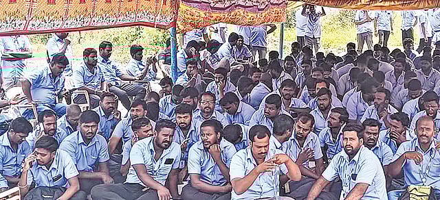CHENNAI: As many as 200 Samsung India workers, who were denied entry into the premises of the manufacturing plant, continued their protest on day two at an open ground in Vellagate in Kancheepuram on Tuesday. The protesting workers are those who had stepped outside the company premises for medical or personal reasons in the midst of a sit-in strike.