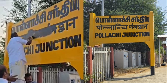 COIMBATORE: The Railway Protection Force (RPF) on Sunday morning booked five DMK members, including Pollachi Town Secretary ‘Thendral’ K Selvaraj, for erasing Hindi letters from three name boards at the Pollachi Railway Station.