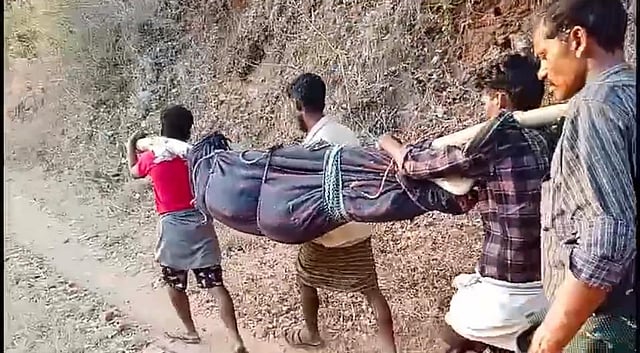 COIMBATORE: Sending a strong message to authorities to lay road, a group of tribal men took the body of man in a doli (makeshift cradle) and walked for over three km from Neeradi to Kadambankombai near Karamadai on Saturday.