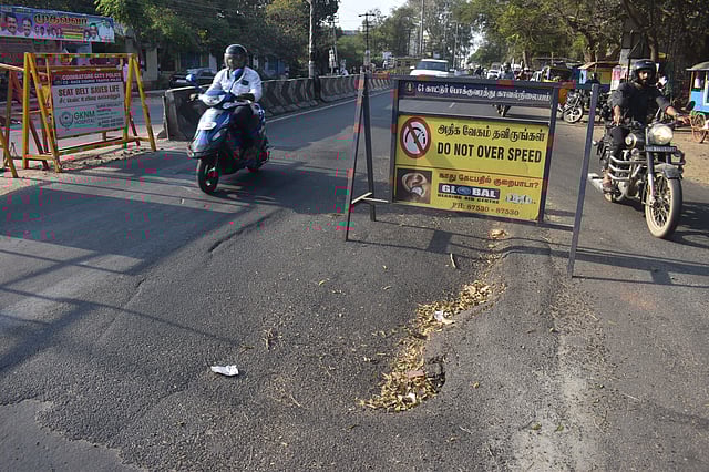 COIMBATORE: Due to hasty and shoddy repair works carried out by the Coimbatore City Municipal Corporation (CCMC) on Pankaja Mill Road, the freshly paved road caved in once again. The officials have installed safety barricades around the caved-in-portion to prevent any mishap.