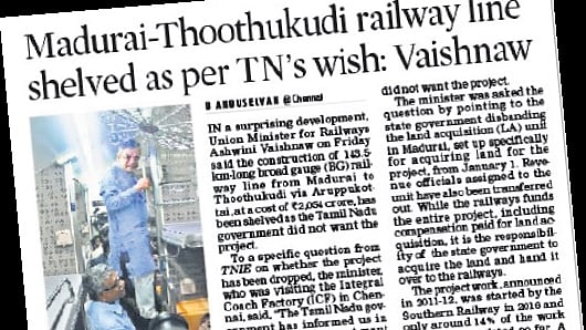 The `2,054-crore worth project, announced in 2011-12, has been under construction since 2016. TNIE had reported based on RTI responses about how the land acquisition unit set up by the state government in Madurai for the project was disbanded on January 1. On Friday, in response to a question by TNIE, Vaishnaw said, “The Tamil Nadu government has said they do not want this project,” but did not elaborate further.