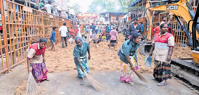 Later, officials pacified her and addressed the issue. A video of the incident went viral on social media. As the event is hosted near the Thiruparagundram Main road, with nearly 20 houses in the locality, the barricades block access to homes and the residents are left to bear the hardships every year.
