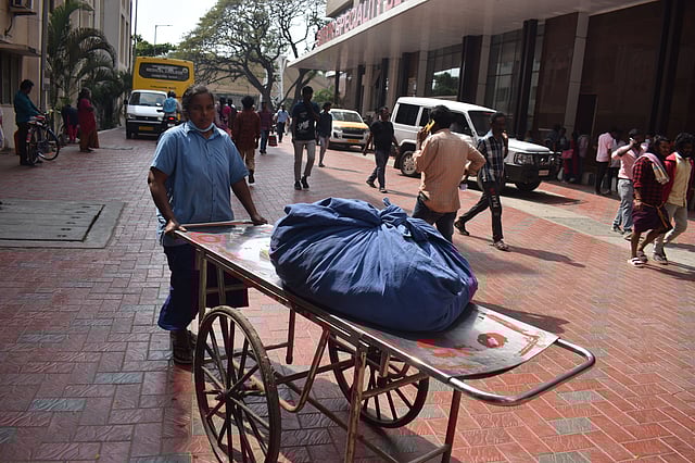 Over the last two days (Monday and Tuesday), TNIE observed on around 30 occasions wherein the hospital staff were seen using wheelchairs and stretchers for non-medical purposes, primarily for transporting waste accumulated in wards.