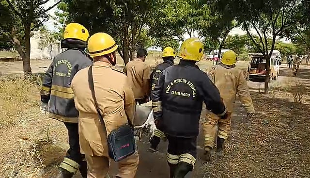 Upon receiving information, four fire and rescue teams comprising 26 personnel, five officials, and four fire tenders from Sivakasi, Sattur, and Virudhunagar rushed to the spot and brought the fire under control.