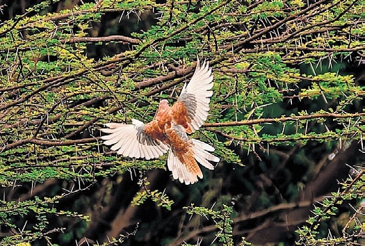 COIMBATORE: An uncommon partially white small pigeon called laughing dove has been spotted in the Nagamalai hillock forest near Nambiyur in Erode. Its finding was documented by two birders, Shajan and Sundaramanickam, on July 5. The laughing dove (spilopelia senegalensis) spotted has white primary and secondary feathers though these birds often have black primary and secondary feathers.