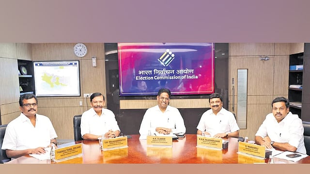 A delegation of DMK MPs NR Elango, TM Selvaganapathy, Thanga Tamil Selvan, KRN Rajeshkumar, and S Murasoli made the representation during a meeting with Chief Election Commissioner Gyanesh Kumar and Election Commissioners Dr Vivek Joshi and Dr Sukhbir Singh Sandhu in New Delhi.