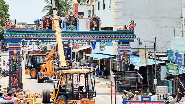 Devotees also point to the Subramanya Swamy temple in Kumaravayalur being in a similar situation. As part of a Rs 4-crore renovation project, a 25-foot-high and 40-foot-wide decorative entrance arch was being constructed on the Vayalur-Adavathur road to replace an ageing one at the Chola-period temple.