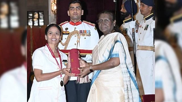 Mangayarkarasi, who is now serving in the Government Hospital in Srivilliputhur, has been honoured with the prestigious Florence Nightingale Award by President Droupadi Murmu at Rashtrapati Bhavan, in recognition of her exemplary contribution in several fields areas including obstetrics and family welfare.