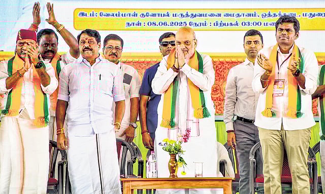 Earlier in the day, Shah offered prayers in the Meenakshi Sundareswarar Temple. He was given a ‘Poorna Kumba Mariyathai’ by temple authorities led by chairperson Rukmini Palanivel Rajan. Madurai Aadheenam Sri La Sri Harihara Sri Gnanasambanda Desika Swamigal welcomed him en route to the temple. Shah left for New Delhi in the evening.