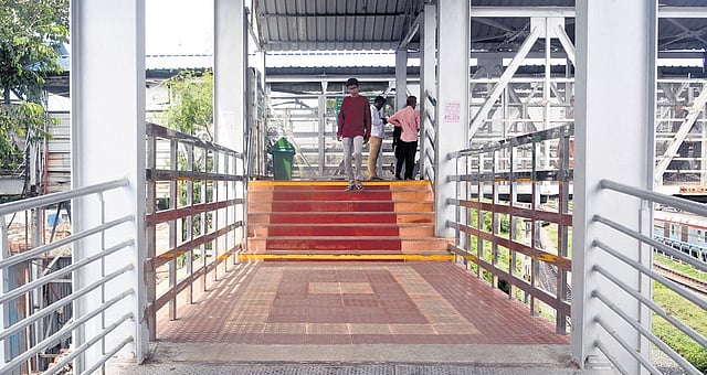 The new FOB on the Poonamallee High Road side also suffers from design flaws. It connects platforms from 4 to 11. Though it begins with a ramp, the path ends abruptly with a six-step staircase. A lift is present, but often overcrowded and slow, offering little relief.