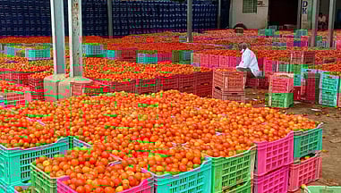 Speaking to TNIE, M Manikandan, a trader in Oddanchatram said, "Last week, the price of tomatoes was hovering over Rs 170 to Rs 200 per box (1 box = 14 kg) around Rs 10 to Rs 12 per kg. The daily arrivals to the market are over 200 boxes for each shop in Oddanchatram market itself. Hence, the price has dropped significantly to Rs 4 to Rs 5 per kg."