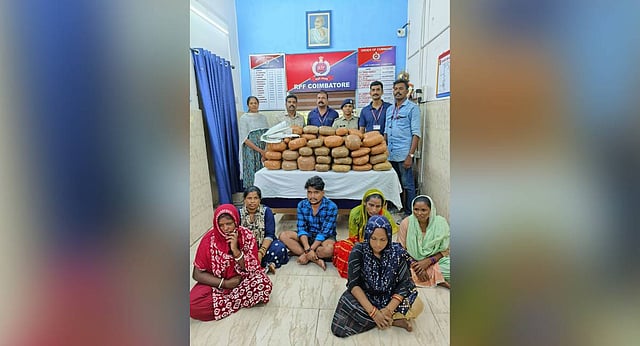 COIMBATORE: Six people including five women were arrested by the Railway Protection Force (RPF) and the Narcotics Intelligence Bureau (NIB) during a drug trafficking bust at the Coimbatore Railway Station on Monday, 62 kg of ganja worth Rs 31 lakh was seized.