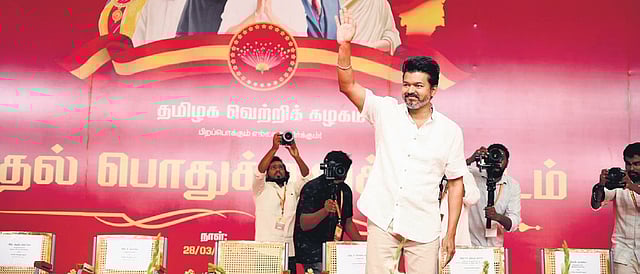 Addressing the first general body meeting of his party, Vijay said the 2026 election will be very different, indicating his aspiration to redefine the bipolarity of Tamil Nadu’s politics by playing down the heft of AIADMK that has ruled the state for three decades. Expressing confidence that TVK would win, he stressed that his party will share power with others.