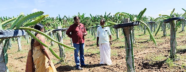 K Gunasekaran, 62, a farmer from Unniyur in Thottiyam who has planted dragon fruit in around one acre said the initial investment for cultivating dragon fruit ranges from Rs 6 lakh to Rs 7 lakh per acre in the first year. "The plants begin to yield only after 15 to 18 months. Until then, we must continue spending on maintenance. However, after three years, the crop can generate Rs 8 lakh to Rs 10 lakh in revenue annually. With minimal upkeep, the plants can continue to bear fruit for 15 to 18 years, producing up to 10 tonnes per acre each year," he said.