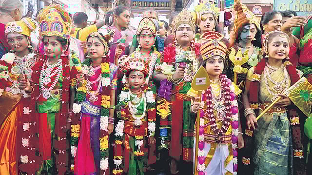 Speaking to TNIE, ER Nagarani (38), who has been in the field for 11 years, said, “In the last four years, the numbers have jumped. I got at least 20 bookings a day during the festival. We handle the full look - makeup, costume rentals, jewellery - and it takes about an hour per child.
