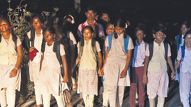 She is just one among the scores of girl students from Kuruviagaram, who, equipped with nothing but torchlights, risk their lives every day while returning from school as there are no buses to the village. “It is unsafe. We also instruct girl students not to accept rides from any strangers,” said S Priya, a female resident.