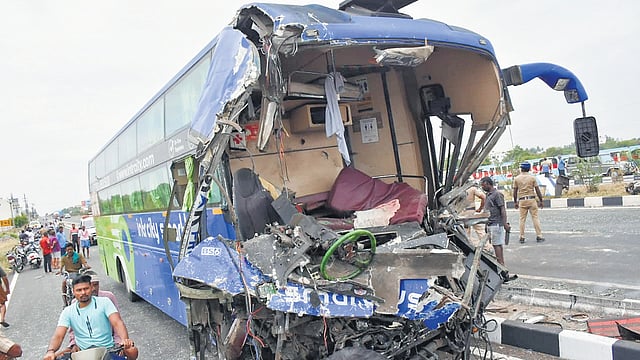 According to sources, the bus was going to Nagercoil from Bengaluru, while the tourists from Kovilpatti were on their way to Yercaud for summer holidays when the vehicles crashed near Karur. Police said the bus jumped the road median after the driver lost control of the vehicle following a collision with the tractor speeding ahead.