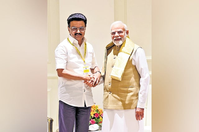 Stalin said just after the news about his participation in the Niti Aayog meeting was out, political adversaries began questioning why he was taking part in this meeting after boycotting it in the past years. “They even speculated that I was going to Delhi with a ‘white flag’ to escape from the consequences arising out of ED raids in the Tasmac issue,” Stalin said.